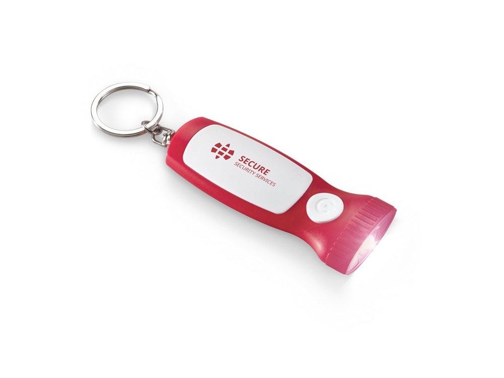 CLEAT. Брелок с лампочками LED, красный с логотипом компании - отличный способ заявить вашу корпоративную идентичность.