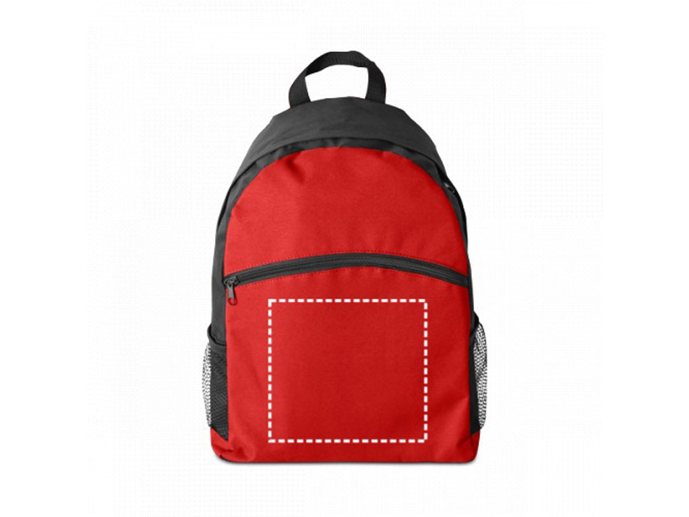Рюкзак из полиэстера 600D с внутренней подкладкой и карманом. Также имеет сетчатые боковые карманы и один передний карман. Задняя часть и шлейки с набивкой. Вид нанесения, рекомендуемый поставщиком: трансфер
