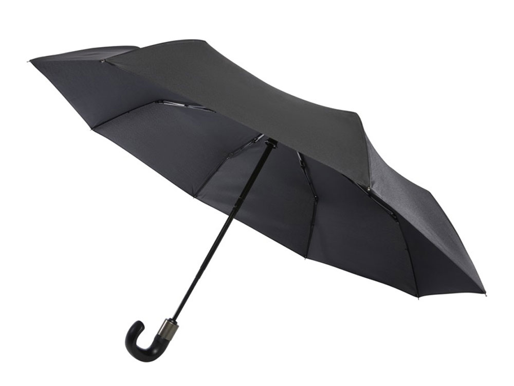 Montebello 21-дюймовый складной зонт с автоматическим открытием/закрытием и изогнутой ручкой, черный
