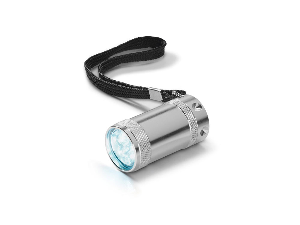 SADO. Фонарь из алюминия, Серебряный. Фонарь из алюминия с 6 лампочками LED. Включает 2 батарейки CR2032. Вид нанесения, рекомендуемый поставщиком: гравировка