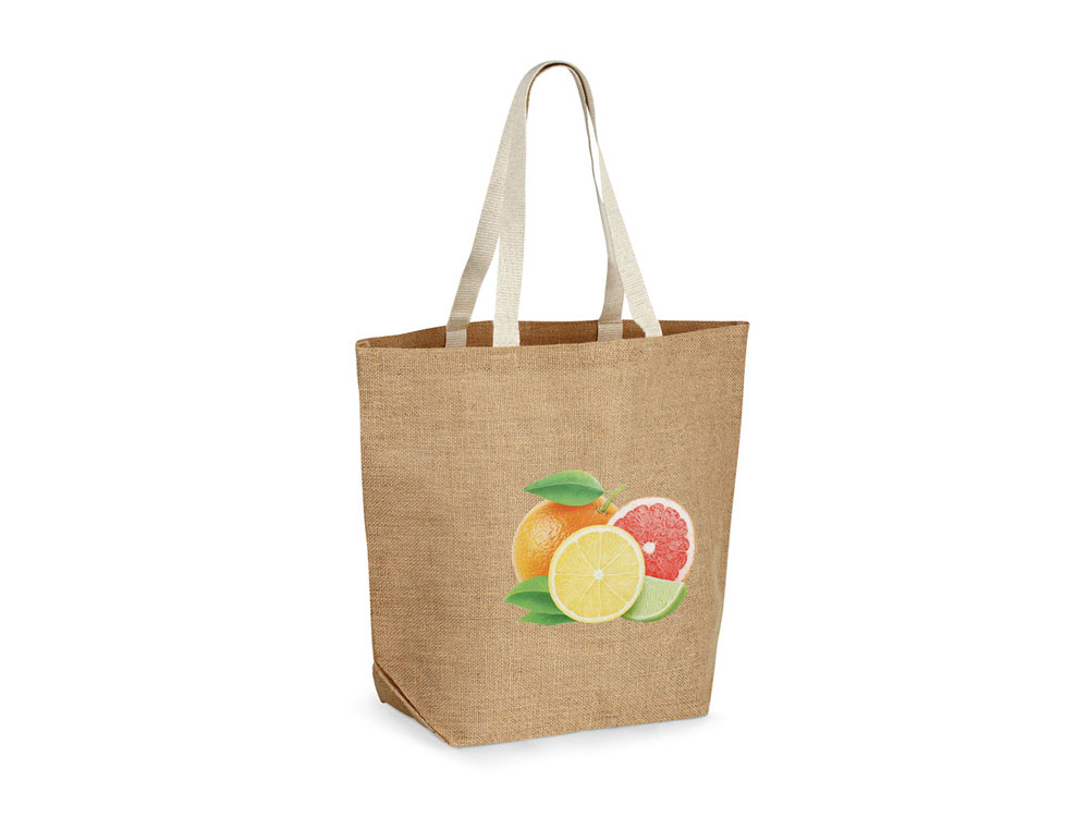 Джутовая сумка для покупок (360 г/м2) , ламинированная внутри, с ручками длиной 60 см.