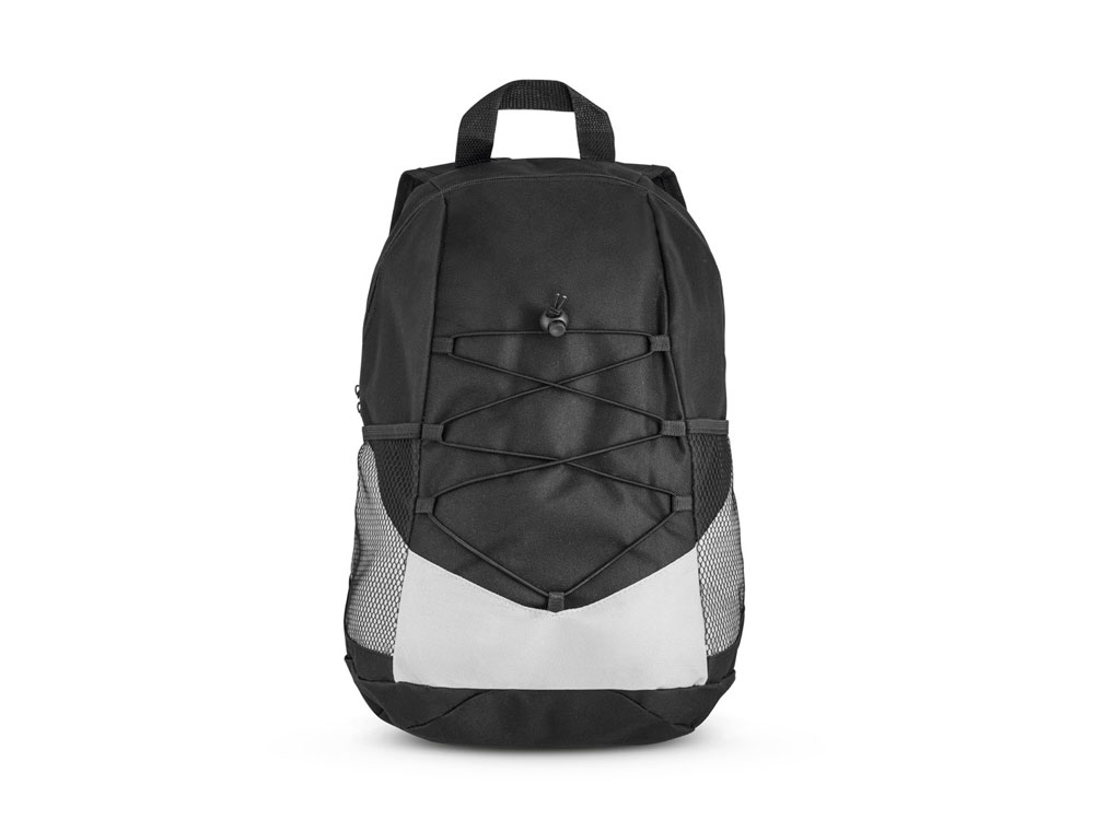 Рюкзак из 600D с боковыми карманами из сетки и одним внутренним. Задняя часть и плечевые ручки с набивкой. 250 x 420 x 180 мм