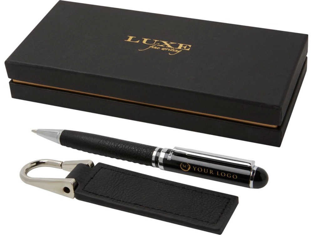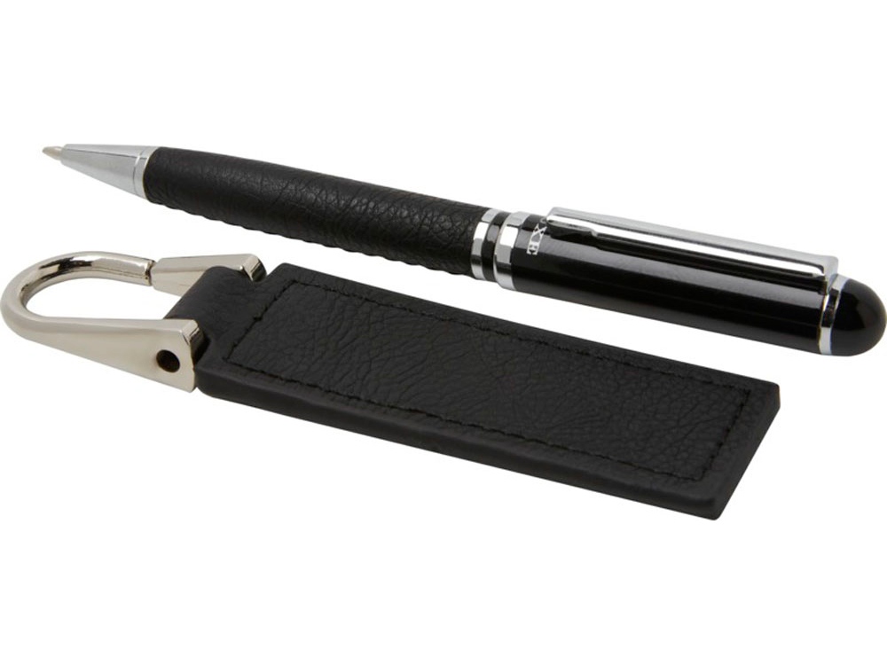 Verse Подарочный набор из шариковой ручки и брелока, черный с логотипом компании - отличный способ заявить вашу корпоративную идентичность.