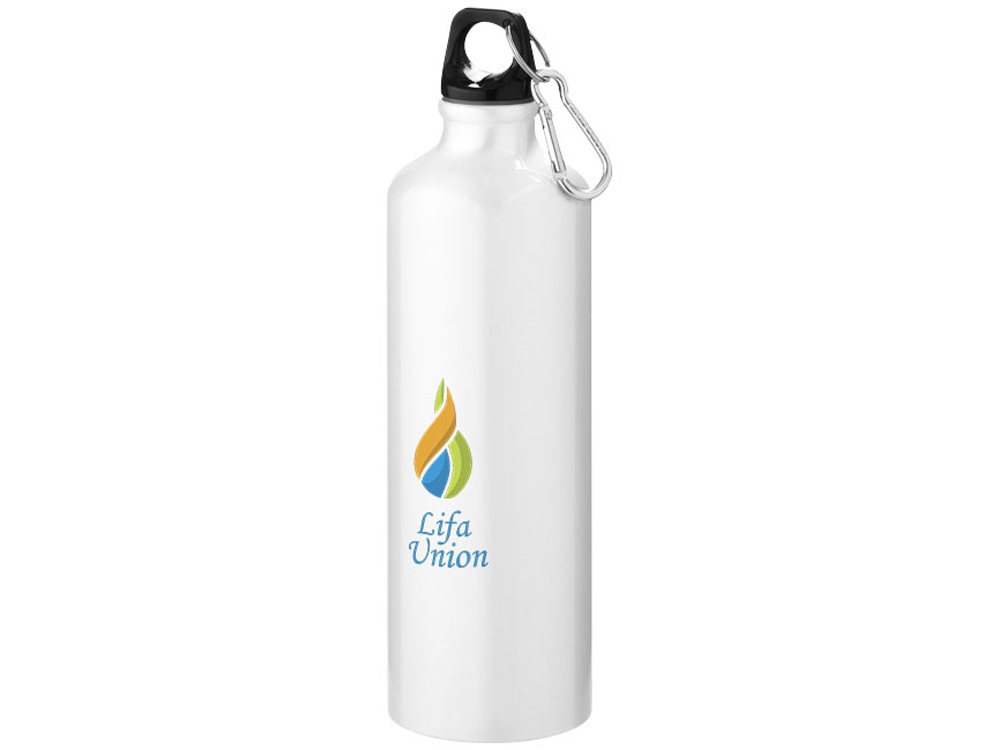 Алюминиевая бутылка для воды Oregon объемом 770 мл с карабином - Белый с логотипом компании - отличный способ заявить вашу корпоративную идентичность.