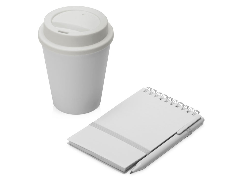 Главная ->Корпоративные подарки и рекламные сувениры на складе -> Термос и бутылка -> Термосы -> Антибактериальный набор с блокнотом и стаканом Safe work, белый