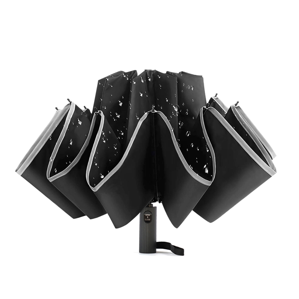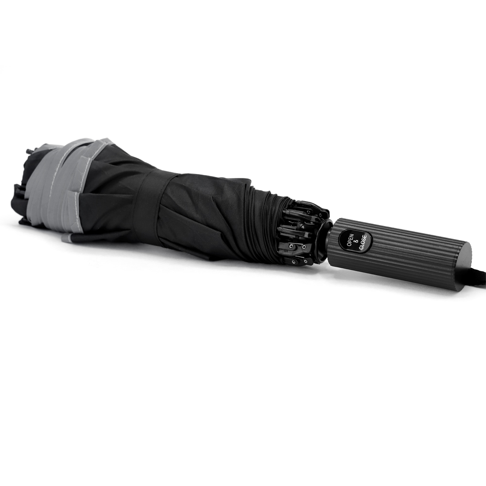Автоматический противоштормовой складной зонт-наоборот Flash reverse со светоотражающей полосой – реверсивный зонт в необычном дизайне. Реверсивный (обратный) способ складывания/раскладывания купола выполнен таким образом, чтобы мокрая сторона спряталась внутрь. Зонт как бы вывернут на изнанку. В итоге внутренняя (сухая) сторона становится наружной, а та, что намокла от дождя, остается внутри. Легким движением - купол выворачивается в обратную сторону (противоштормовая функция). Материал купола – эпонж со светоотражающей кромкой. Вы будете замеченным со светоотражающими полосами зонта и останетесь в безопасности в темную дождливую погоду. На материале зонта вода превращается в капельки и скатывается, а сам зонт остается сухим. Ветрозащитная функция – спицы из стекловолокна, а специальное устройство препятствует поломке спиц при резких порывах ветра.