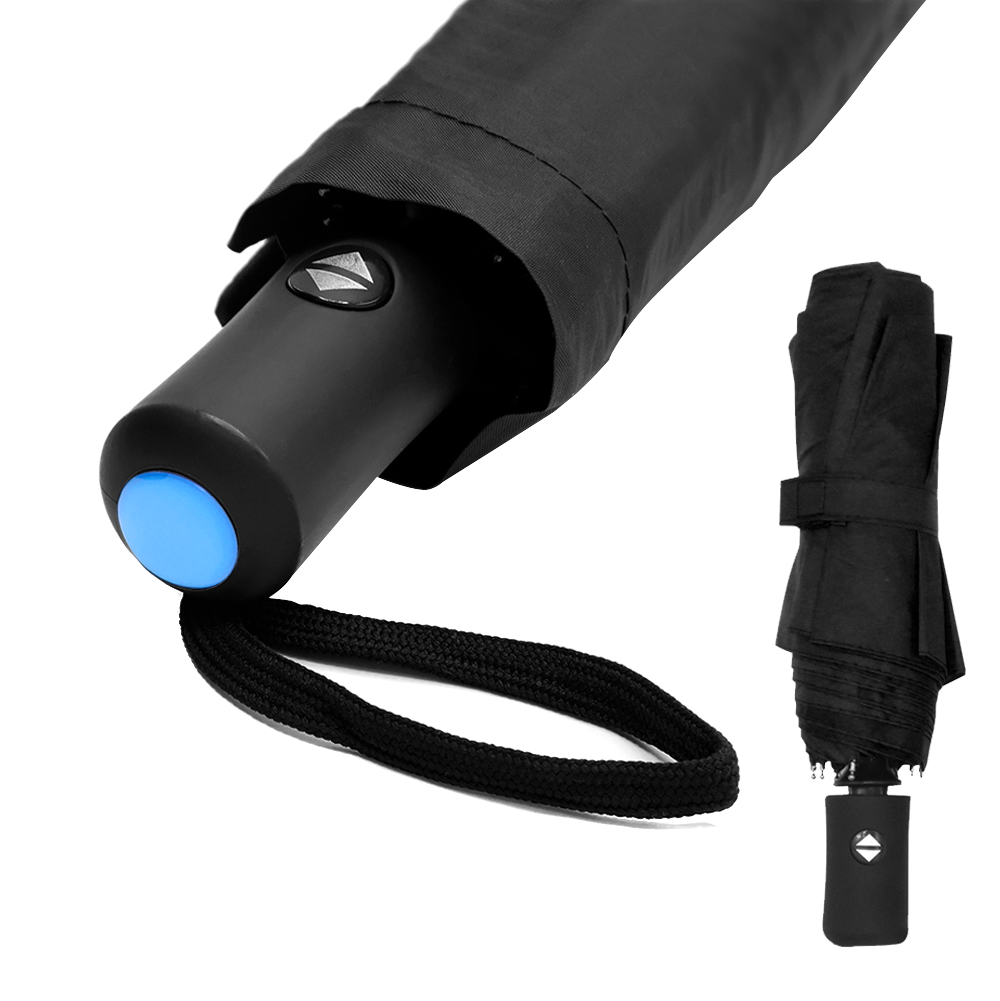 Главная ->Корпоративные подарки и рекламные сувениры на складе -> Зонты -> Зонты складные -> Автоматический противоштормовой зонт Vortex To Go, чёрный/голубой
