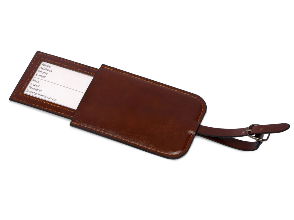 Компания «Эклектика BY» осуществляет нанесение логотипа на сувенирную продукцию: Багажная бирка из PU Fabrizio, коричневый. Арт. 424040