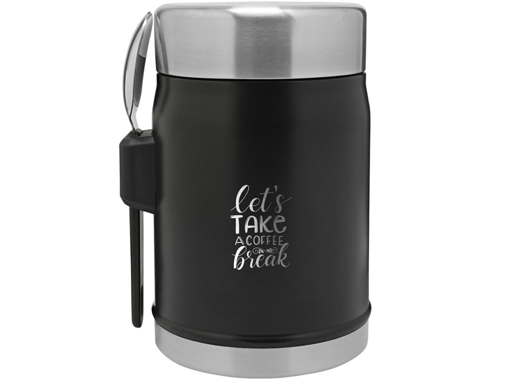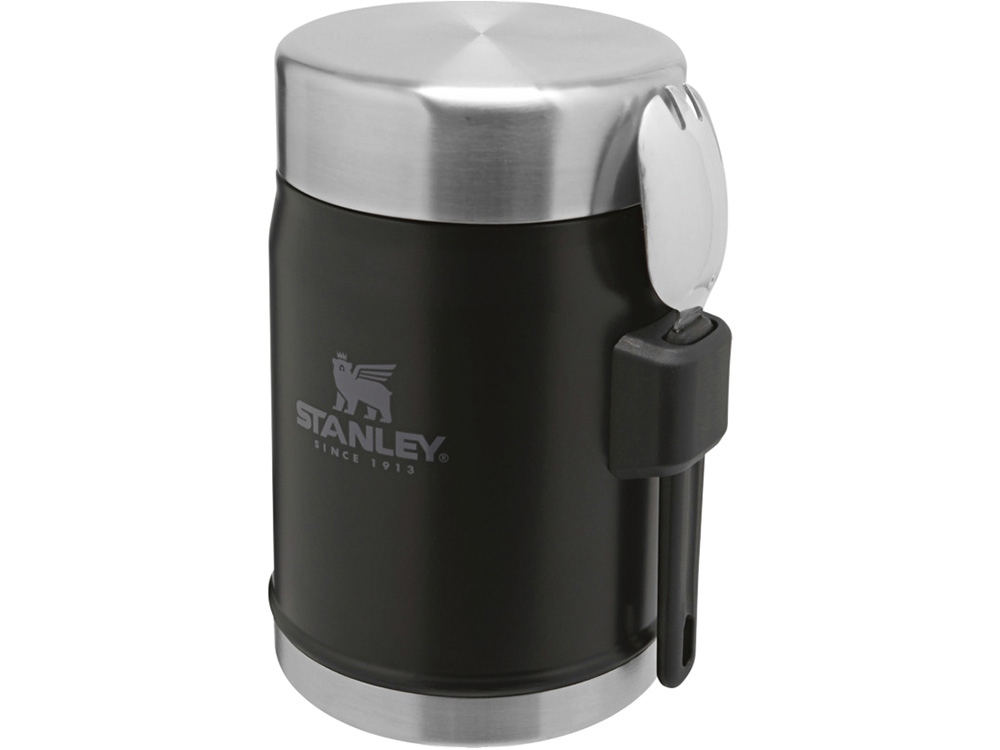 Банка для еды объемом 400 мл с ложкой-вилкой Stanley Legendary - черный матовый с логотипом компании - отличный способ заявить вашу корпоративную идентичность.