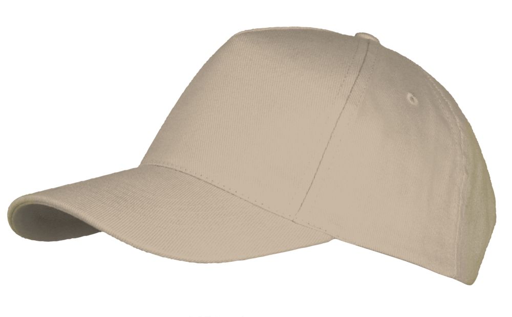 Модель бейсболки с 5-ю клиньями без лобового шва из плотного чесаного хлопка.