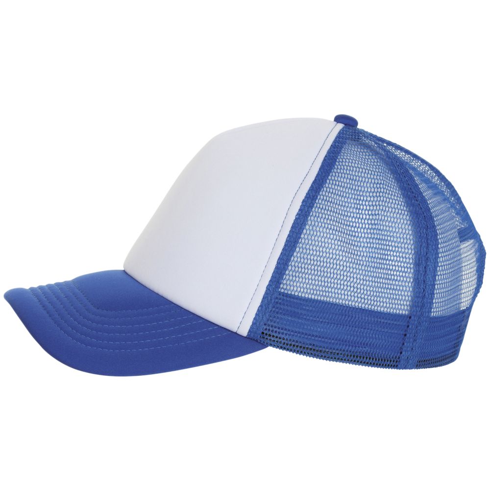 Бейсболка с 5 клиньями из сетки. Поролон в переднем клине (5 мм) и козырьке (3 мм). Регулируемая пластиковая застежка.