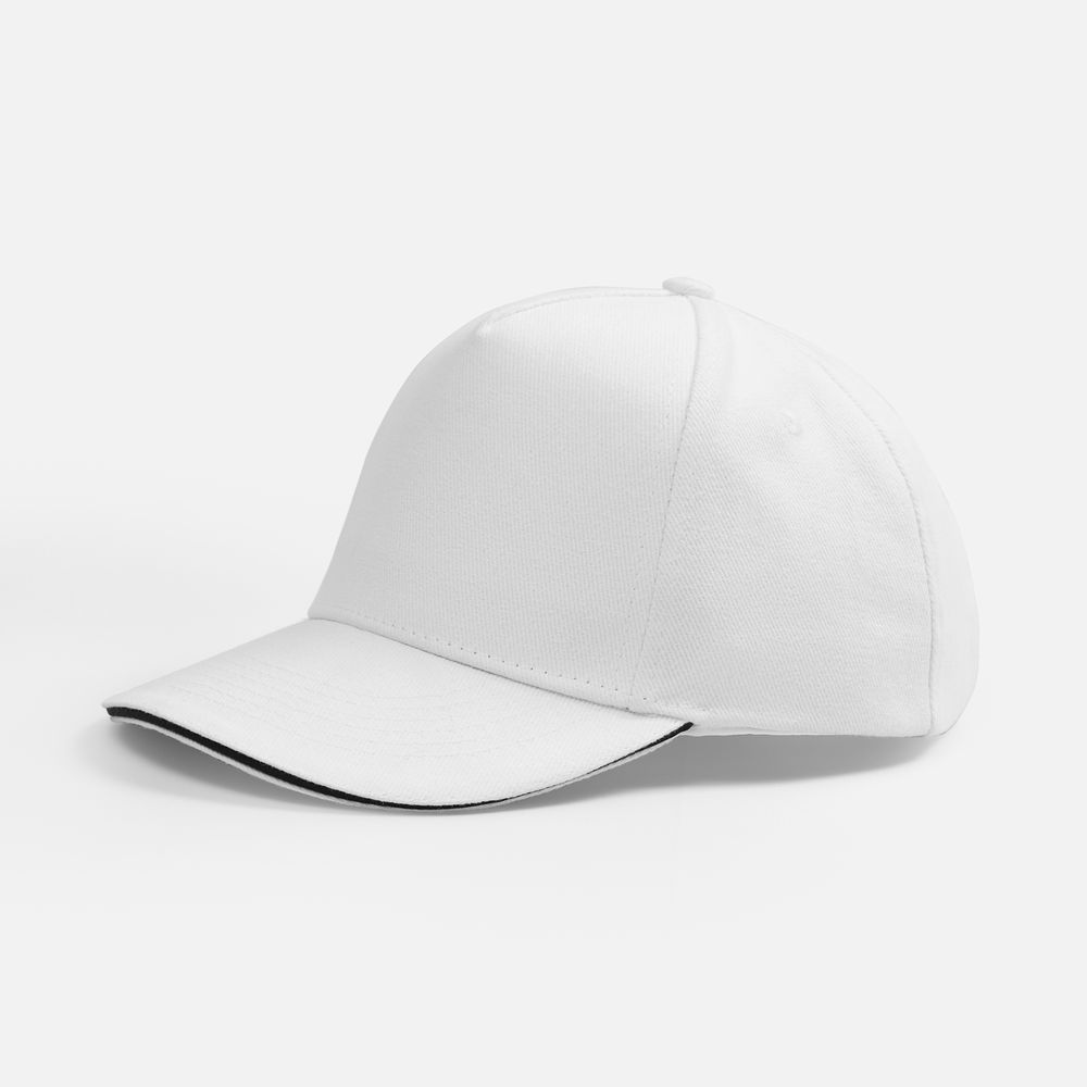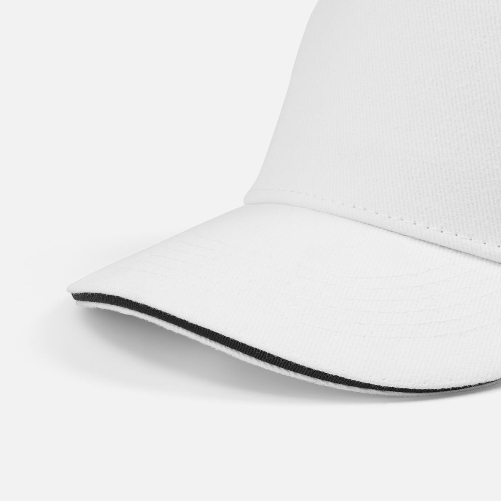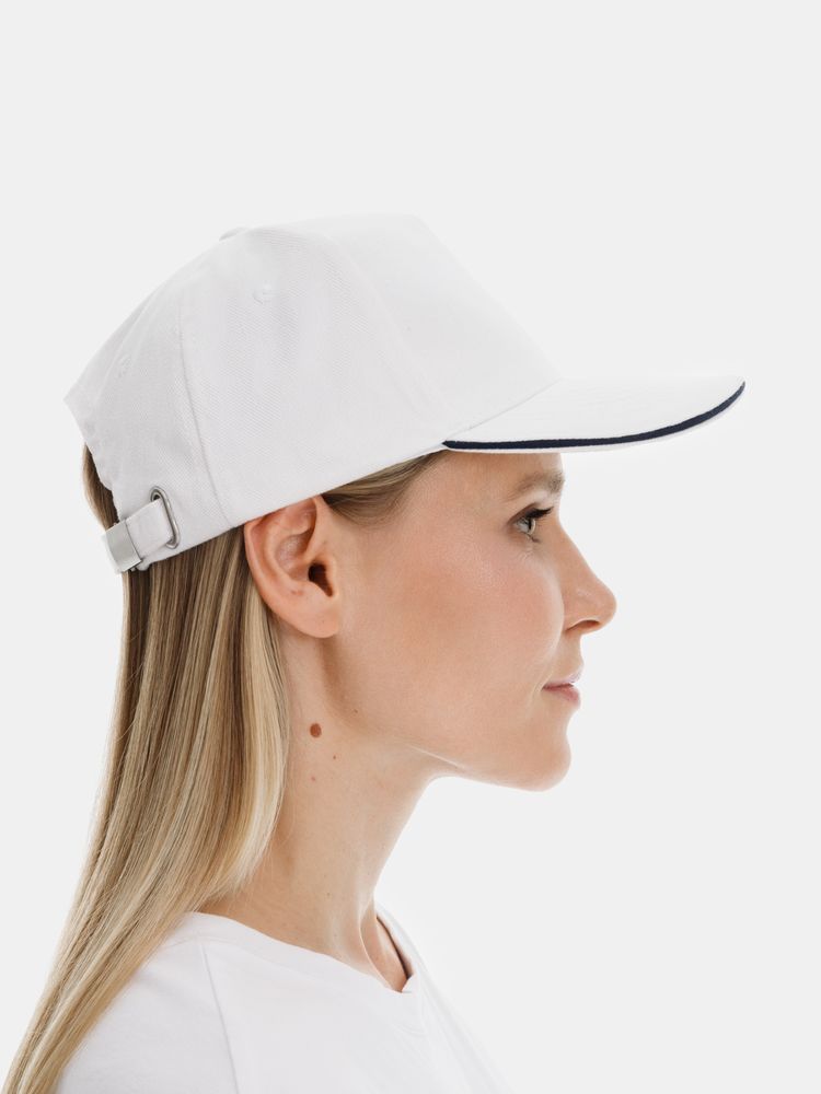 Бейсболка Classic 2.0, белая с темно-синим кантом с логотипом компании - отличный способ заявить вашу корпоративную идентичность.