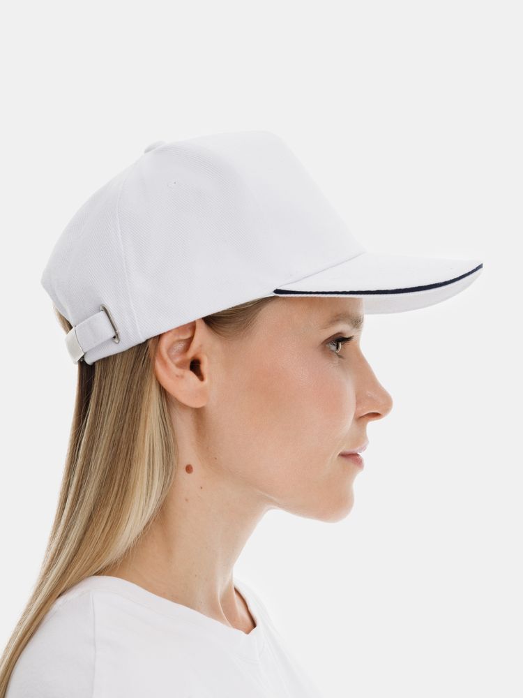 Главная ->Корпоративные подарки и рекламные сувениры на складе -> Promo одежда и аксессуары -> Бейсболки -> Бейсболка Long Beach, белая с темно-синим
