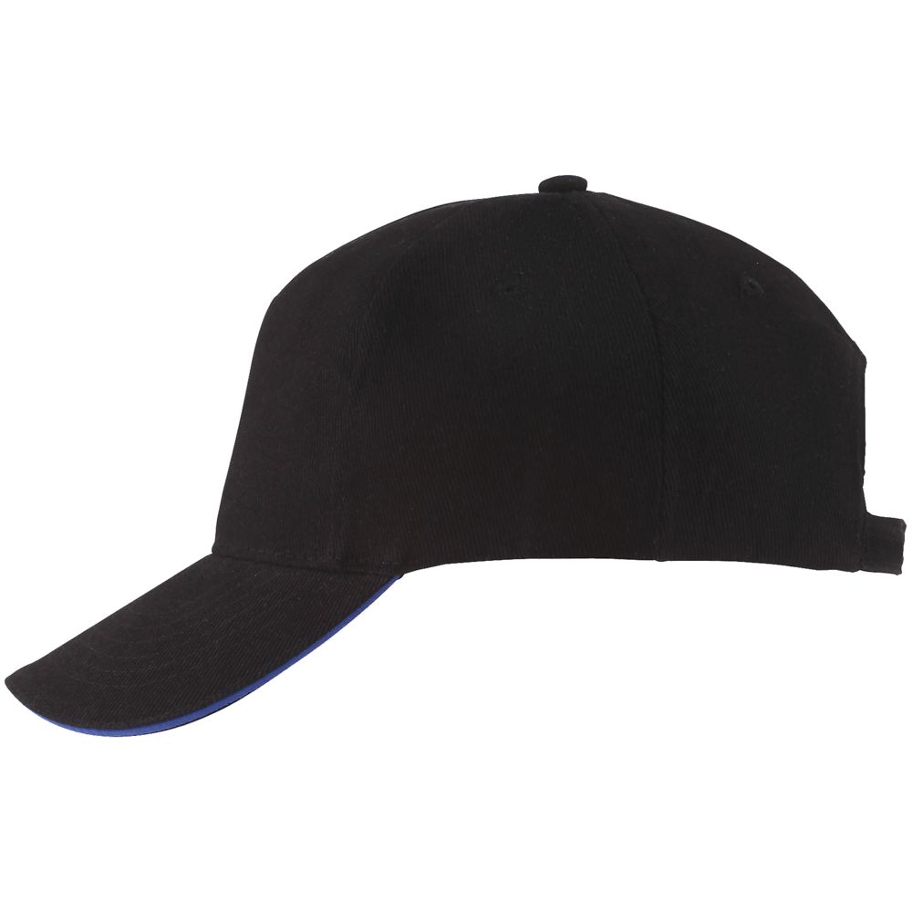Бейсболка Long Beach, черная с ярко-синим с логотипом компании - отличный способ заявить вашу корпоративную идентичность.