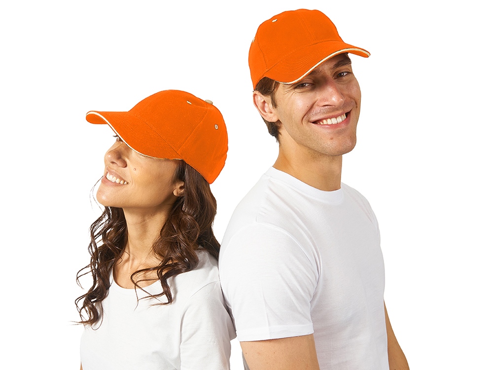 Бейсболка New Castle 6-ти панельная, оранжевый/белый с логотипом компании - отличный способ заявить вашу корпоративную идентичность.