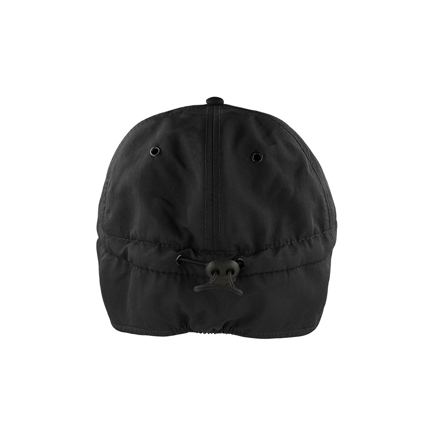 Утеплённая бейсболка с защитным клапаном для ушей и затылка из переработанного нейлона с подкладом из флиса поможет сохранить тепло в холодные дождливые дни. 6 клиньев; 6 металлических люверсов в цвет основной ткани; Верхняя ткань обработана водоотталкивающим составом. PFCs FREE- не содержит химических веществ перфторатов ; Шнур-утяжка с пластиковым стоппером на задней части для регулирования размера; Цвет, близкий к Pantone BLACK C 58,5 см - средний размер, с помощью застёжки его можно увеличить или уменьшить до необходимого.