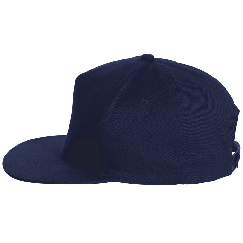 Однотонная бейсболка с 5 клиньями из материала, на ощупь напоминающего шерсть. Плоский козырек, 4 вышитых отверстия для вентиляции, регулируемая пластмассовая застежка сзади.