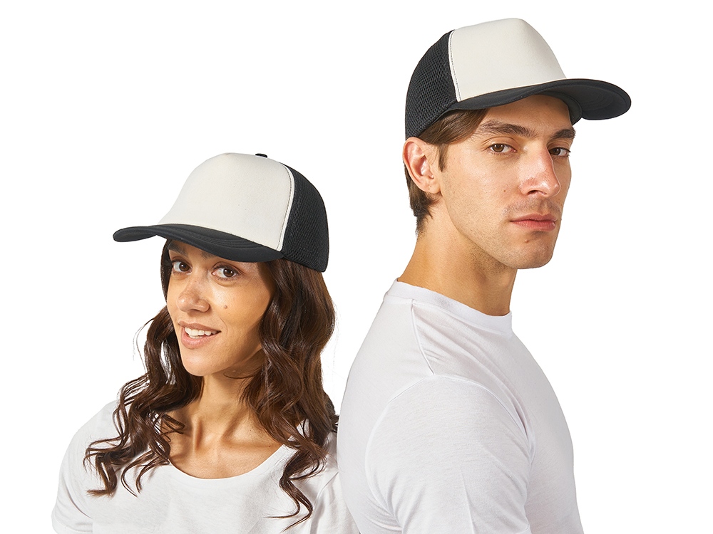 Бейсболка с сеткой Newport, белый/черный с логотипом компании - отличный способ заявить вашу корпоративную идентичность.