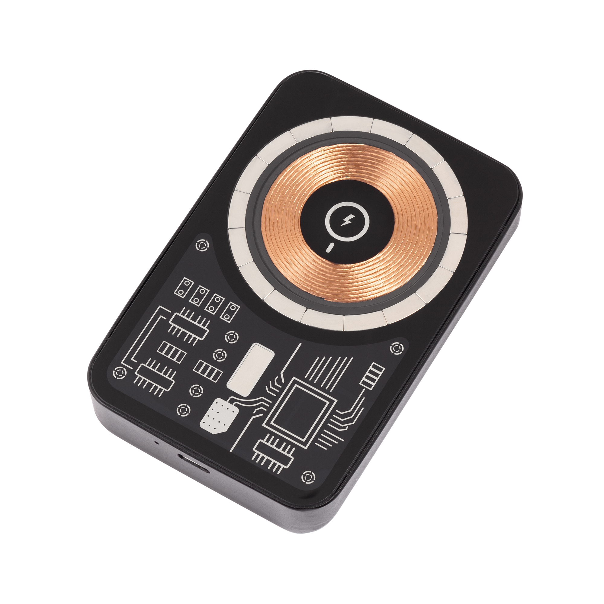 Главная ->Корпоративные подарки и рекламные сувениры на складе -> Сувенирная электроника -> Беспроводные зарядные устройства -> Беспроводное зарядное устройство "Skeleton" 10000 mAh с функцией MagSafe, прозрачный пластик/алюминий