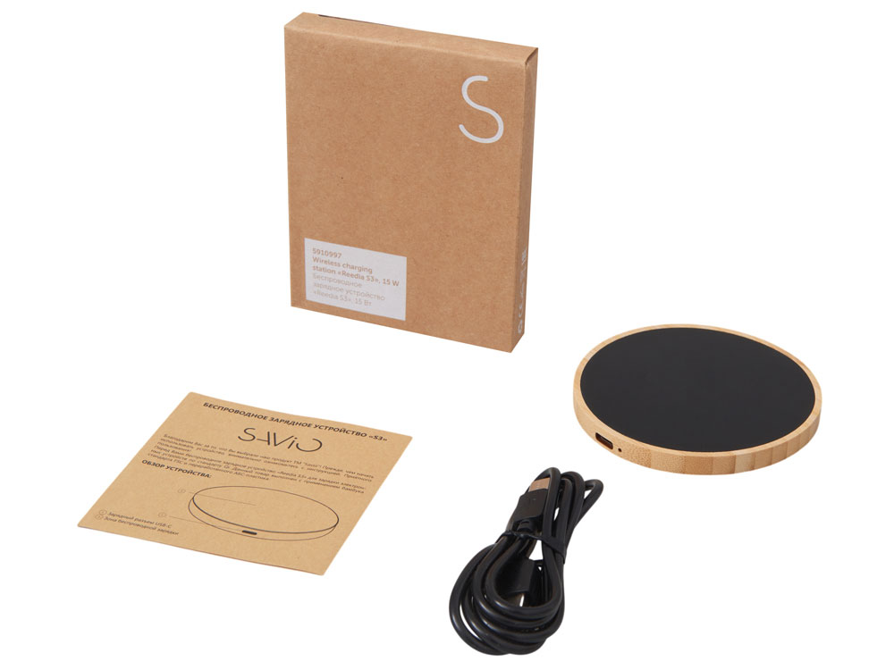 Беспроводное зарядное устройство с подсветкой лого Reedia S3, 15 Вт, бамбук, черный с логотипом компании - отличный способ заявить вашу корпоративную идентичность.