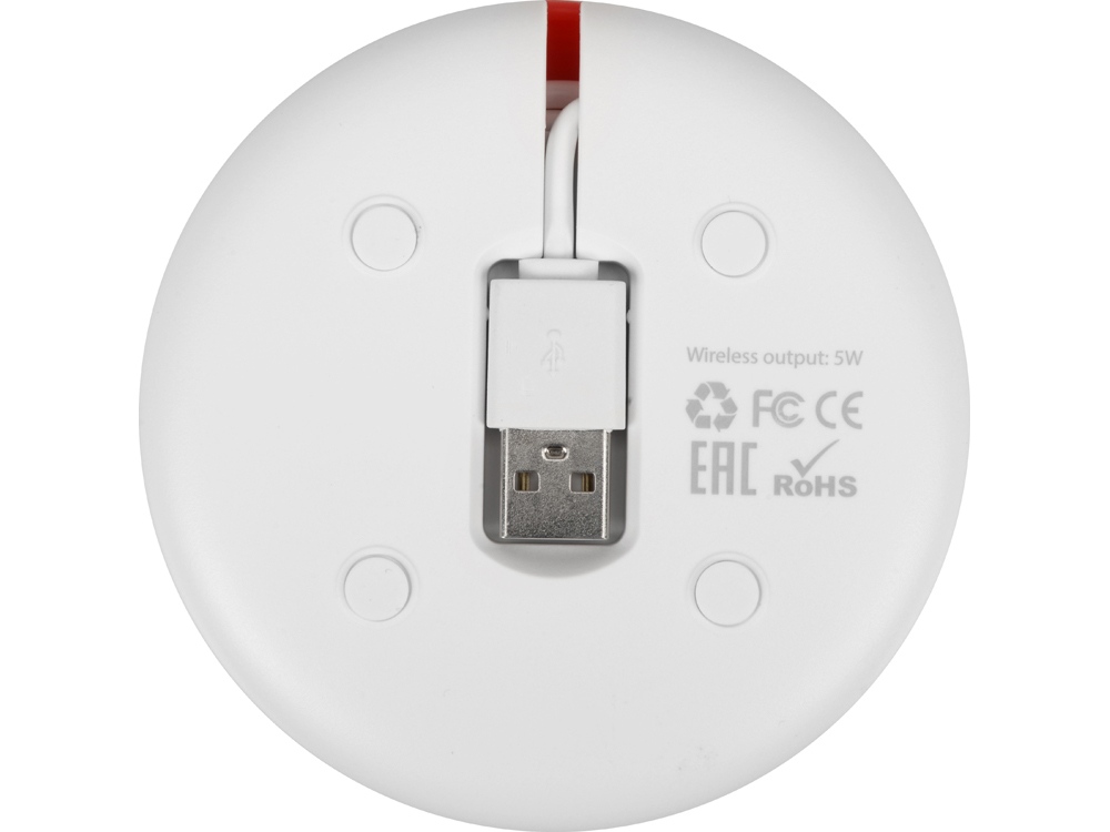 Компания «Эклектика BY» осуществляет нанесение логотипа на сувенирную продукцию: Беспроводное зарядное устройство со встроенным кабелем 2-в-1 Disc, красный. Арт. 422166