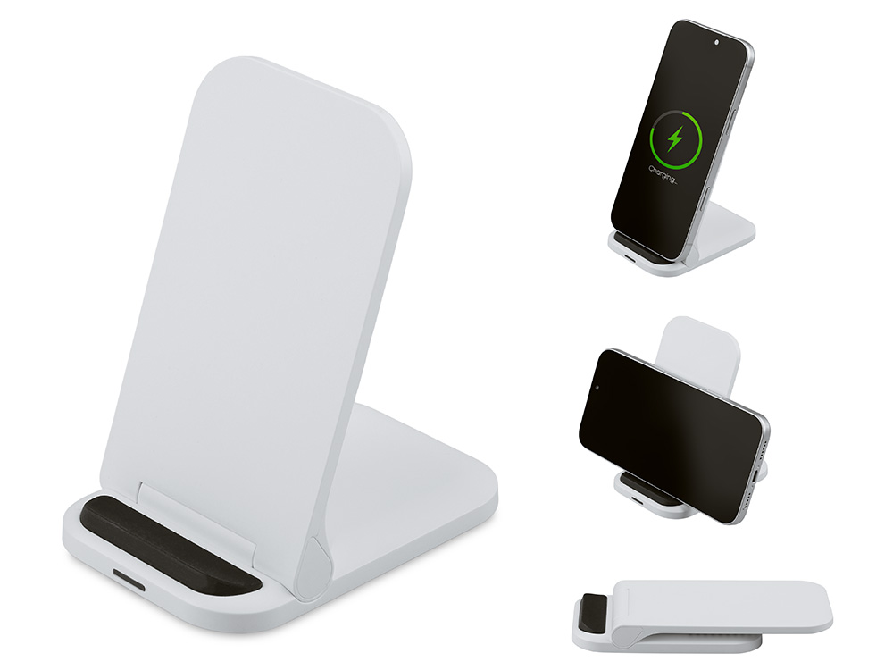 Беспроводное зарядное устройство Foldy, 15 Вт, белый с логотипом компании - отличный способ заявить вашу корпоративную идентичность.