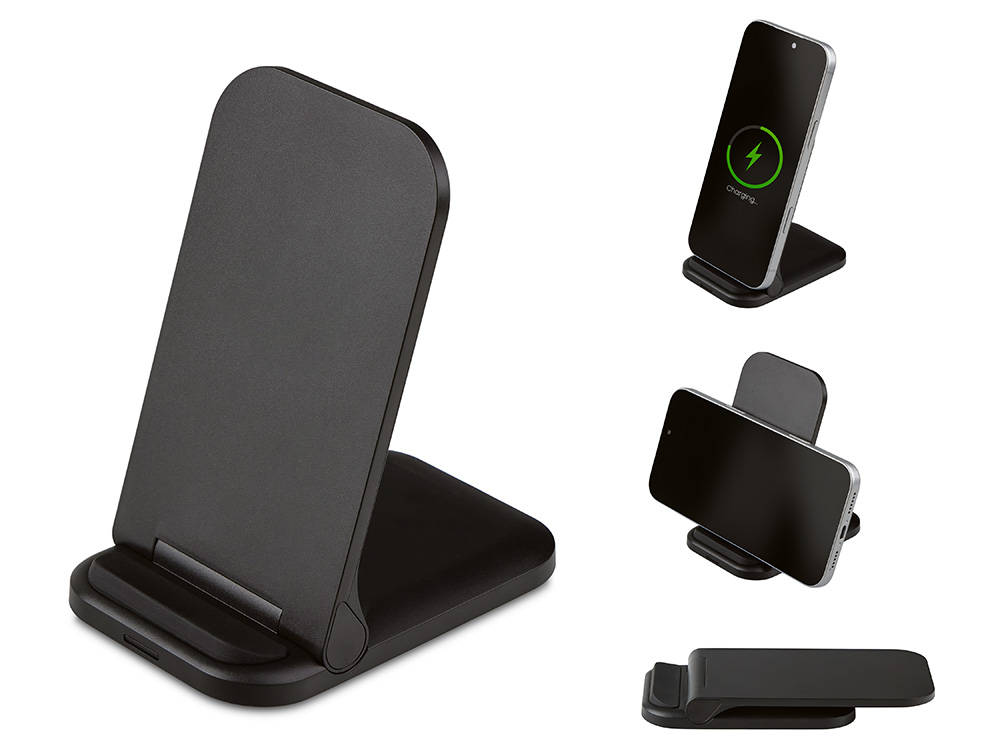 Беспроводное зарядное устройство Foldy, 15 Вт, черный с логотипом компании - отличный способ заявить вашу корпоративную идентичность.