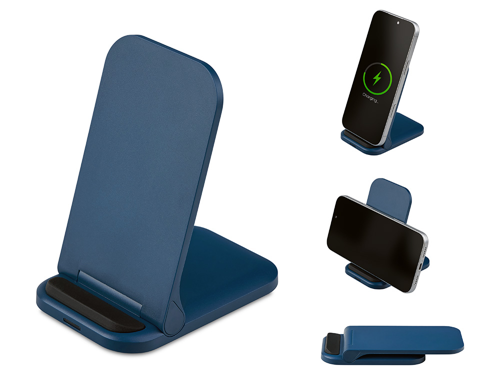Беспроводное зарядное устройство Foldy, 15 Вт, темно-синий с логотипом компании - отличный способ заявить вашу корпоративную идентичность.