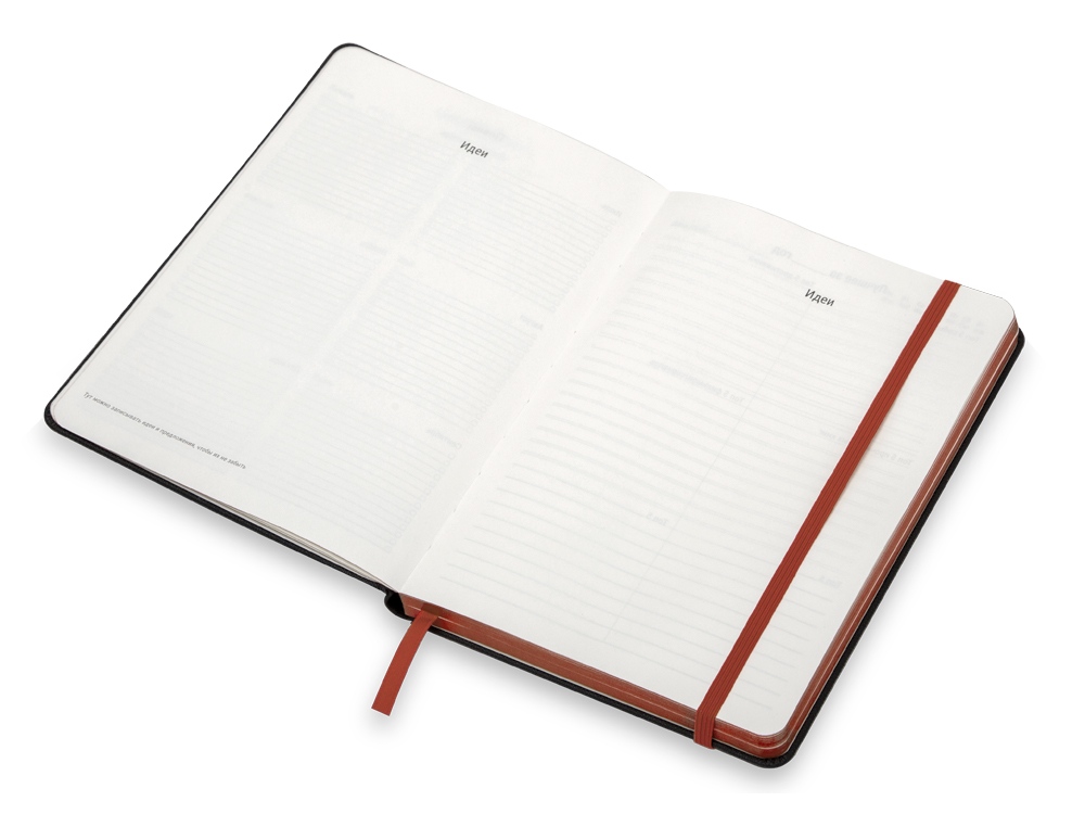 • Наличие резинки, петли для ручки на корешке и ляссе