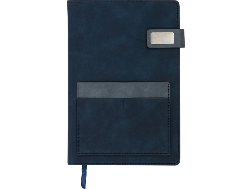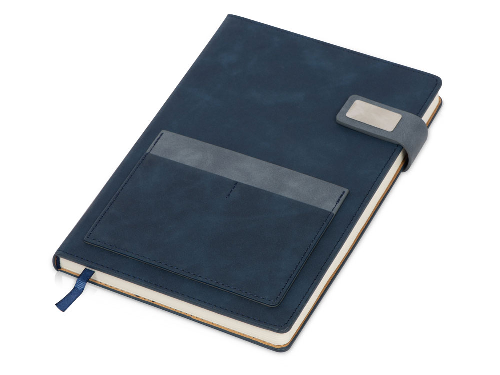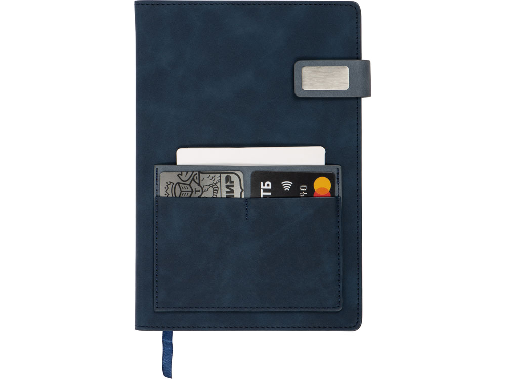 Бизнес блокнот А5 Freya с клапаном и карманом для визиток, твердая обложка, 128 листов, синий и темно с логотипом компании - отличный способ заявить вашу корпоративную идентичность.