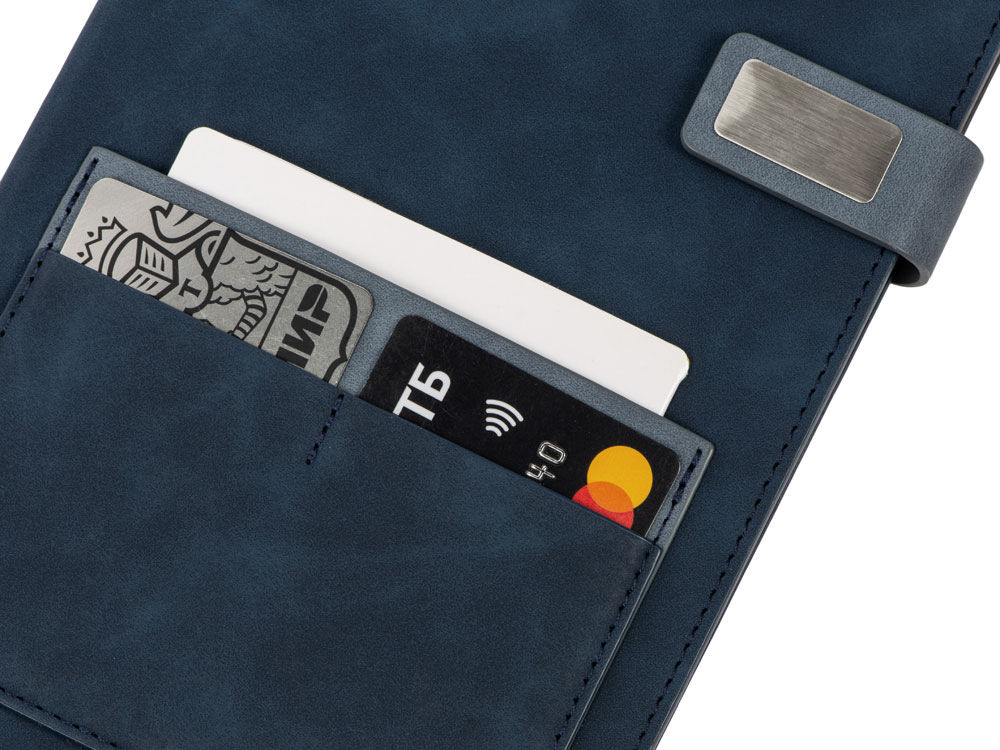 Бизнес блокнот А5 Freya с клапаном и карманом для визиток, твердая обложка, 128 листов, синий и темно