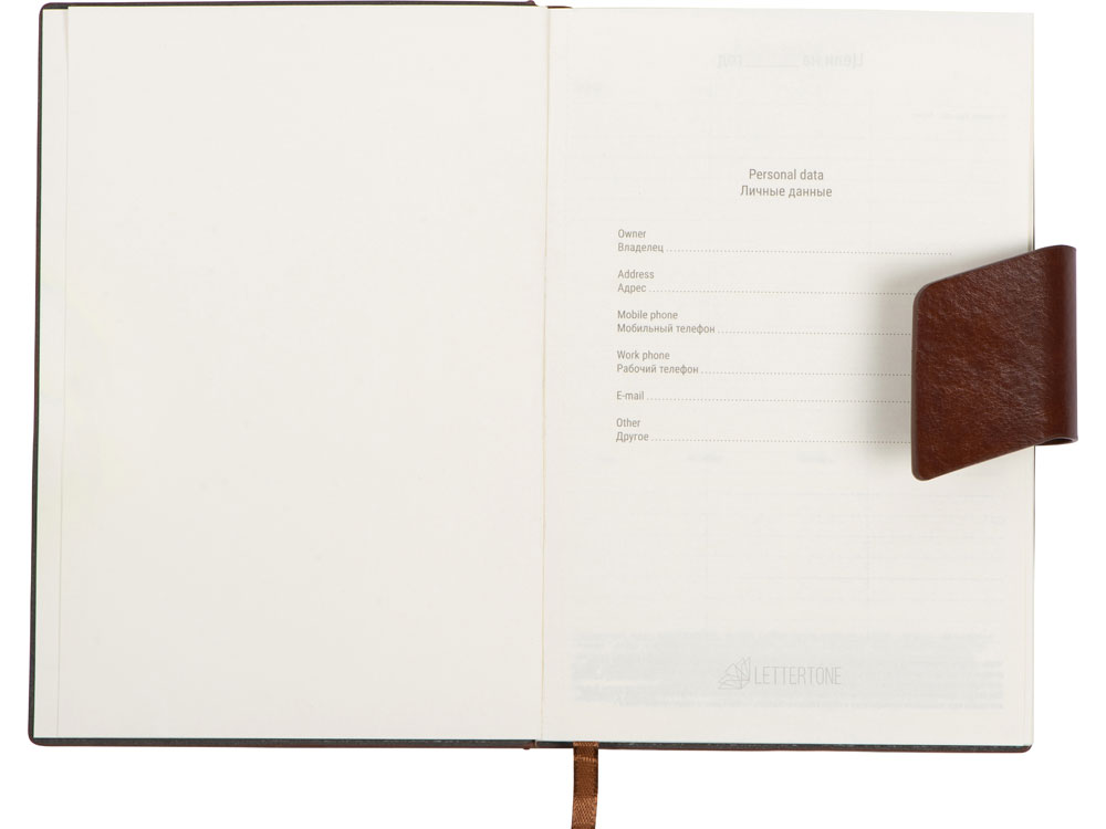 Компания «Эклектика BY» осуществляет нанесение логотипа на сувенирную продукцию: Бизнес блокнот А5 Monoi с клапаном, твердая обложка, 128 листов, коричневый. Арт. 427281