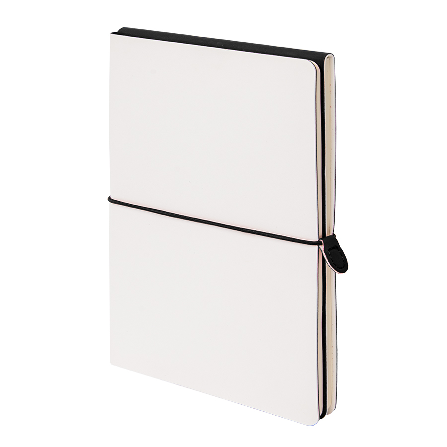 Компания «Эклектика BY» осуществляет нанесение логотипа на сувенирную продукцию: Бизнес-блокнот "Combi", 130*210 мм, бело-черный, кремовый форзац, гибкая обложка, в клетку/нелин. Арт. 257689