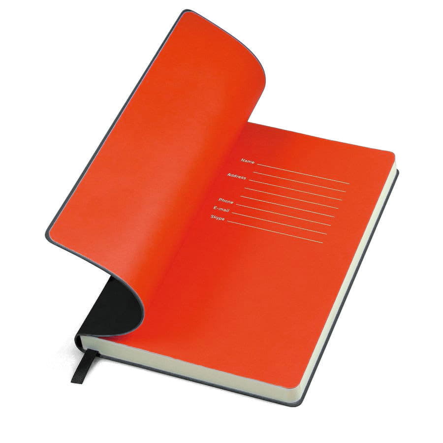 Бизнес-блокнот FUNKY, 130*210 мм, черный, красный форзац, мягкая обложка, в линейку с логотипом компании - отличный способ заявить вашу корпоративную идентичность.