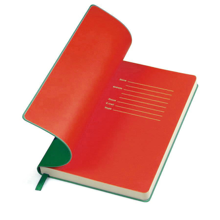 Бизнес-блокнот FUNKY, 130*210 мм, зеленый, красный форзац, мягкая обложка, в линейку с логотипом компании - отличный способ заявить вашу корпоративную идентичность.