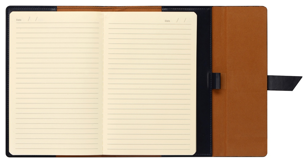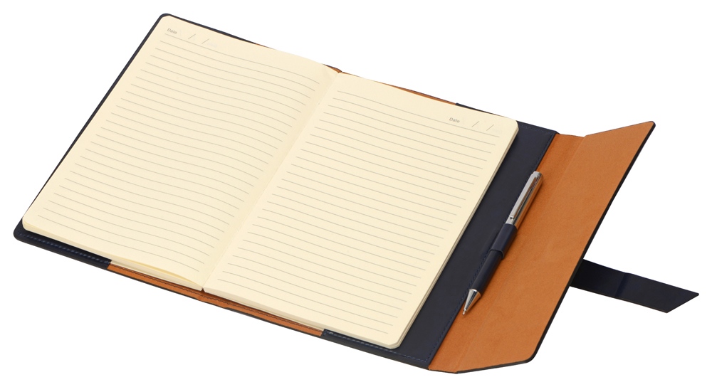 Бизнес-блокнот формата А5 в твердой обложке из искусственной кожи станет отличным подарком для любого клиента. Блокнот состоит из обложки с клапаном и сменного блока с линованными страницами. Внутри обложки есть петля для ручки в тон (ручка в комплект не входит).