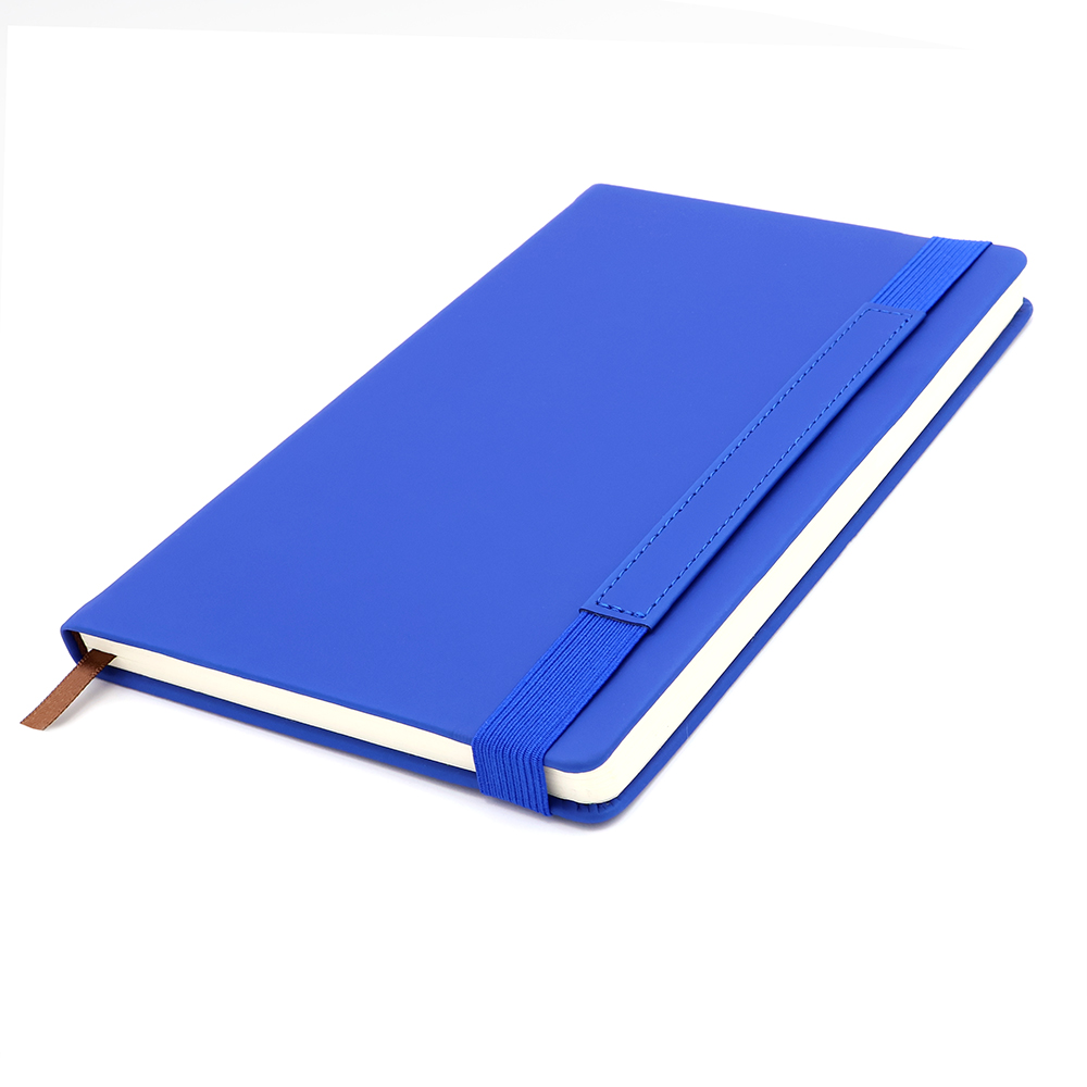 Блокнот формата А5 в твёрдой обложке из искусственной кожи. Материал обложки — термополиуретан, текстура — гладкая. Из особенностей: широкая эластичная застёжка со вставкой из кожзама. На неё можно нанести логотип либо слоган вашей компании.