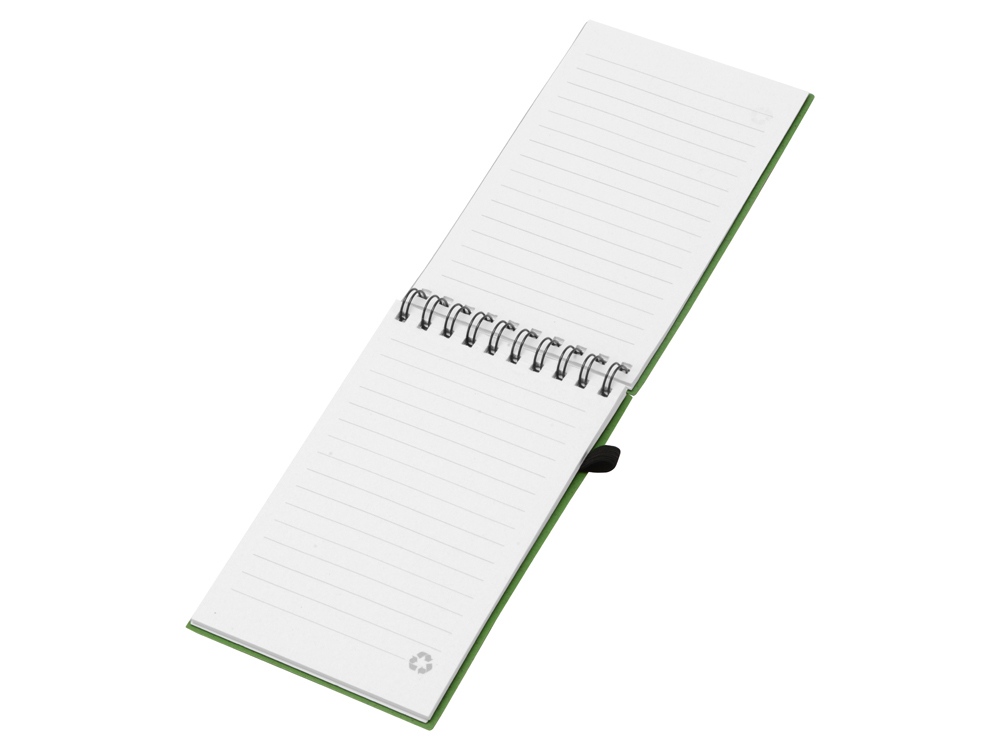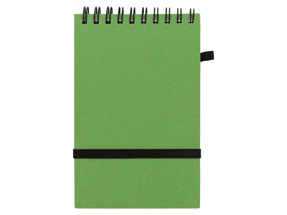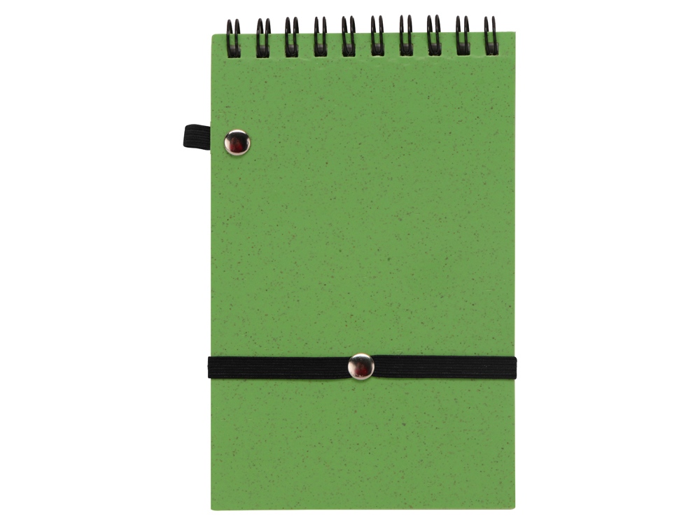 Блокнот с обложкой из переработанной пшеницы и пластика. Блок состоит из 60 листов переработанной бумаги белого цвета. Крепление - пружина. В комплекте шариковая ручка из пшеничной соломы.