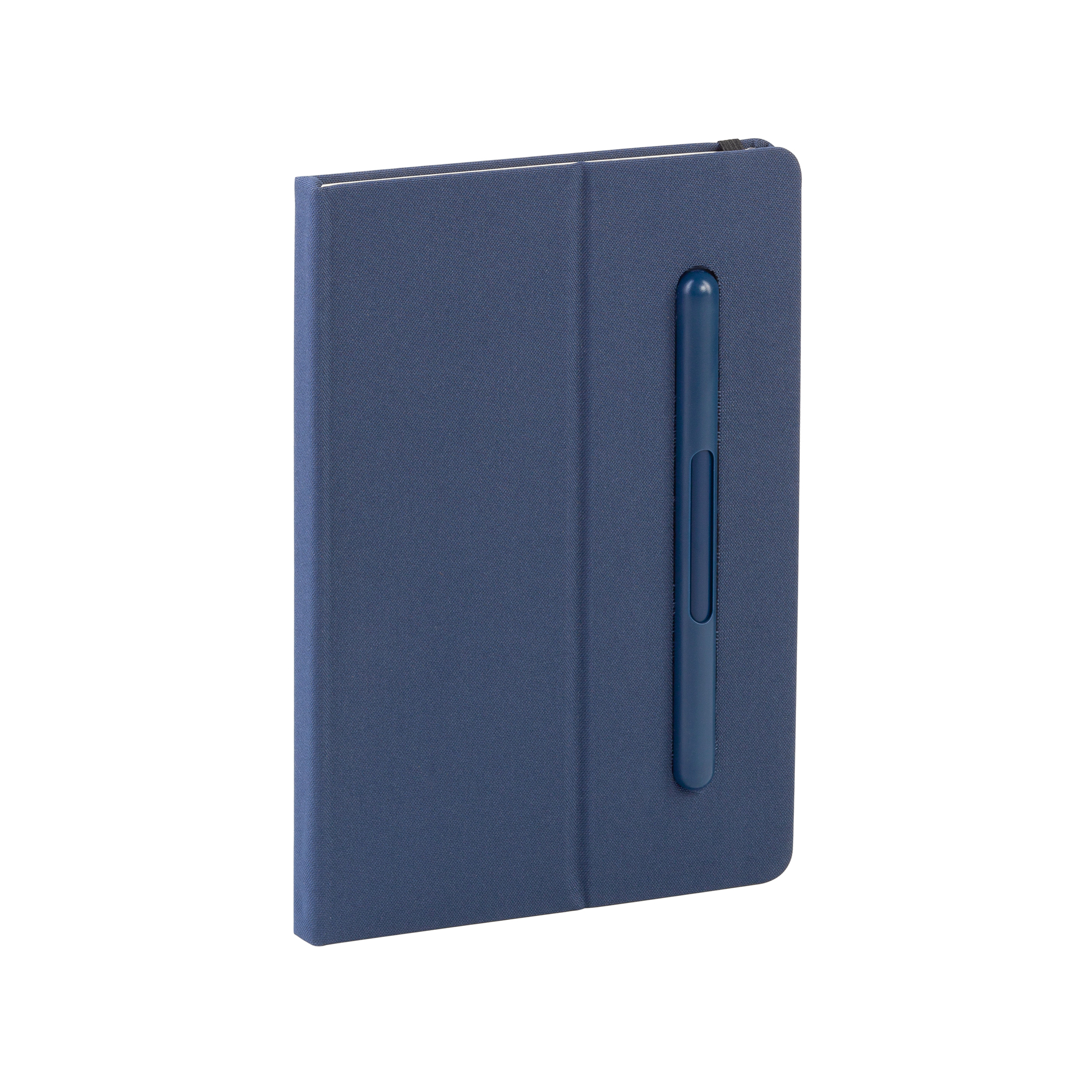 - Блокнот формата А5 с резинкой-фиксатором и встроенным пеналом под ручку-карандаш. Внутренний блок состоит из 160 страниц в линейку кремовой бумаги плотностью 80 г/м2. Через окошко пенала можно видеть нанесенный на ручку-карандаш логотип.