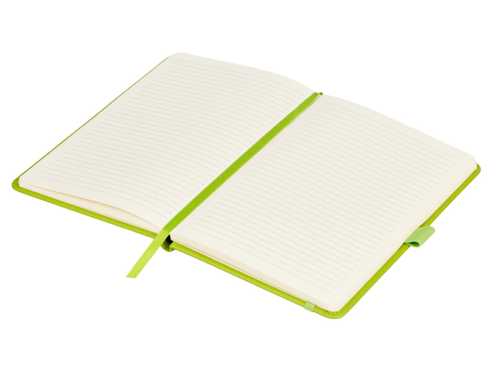 Блокнот в твердой обложке с закругленными углами представлен в широком ассортименте цветов. Внутри 80 листов кремового блока плотностью 70 г/м2 и ляссе в цвет обложки, которая упрощает навигацию по блокноту.
