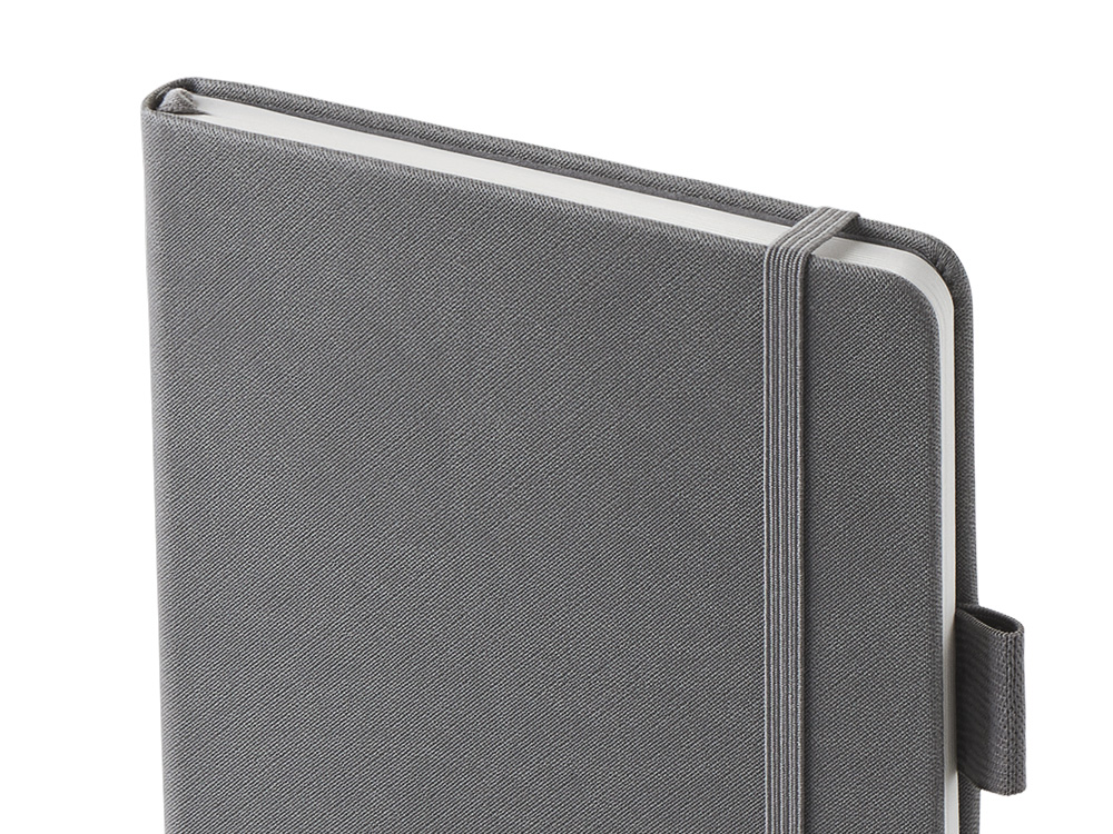 Стильный блокнот в твердой обложке из текстурной искусственной кожи, приятной на ощупь.