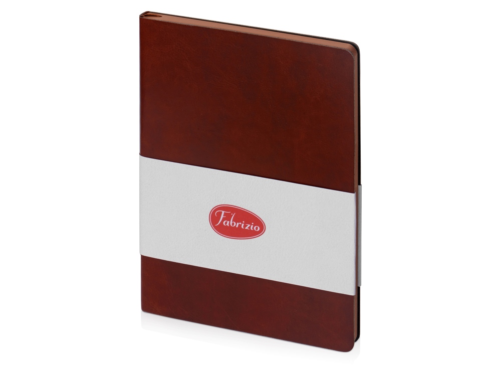 Компания «Эклектика BY» осуществляет нанесение логотипа на сувенирную продукцию: Блокнот А5 Fabrizio, 80 листов, цветной срез, коричневый. Арт. 424035