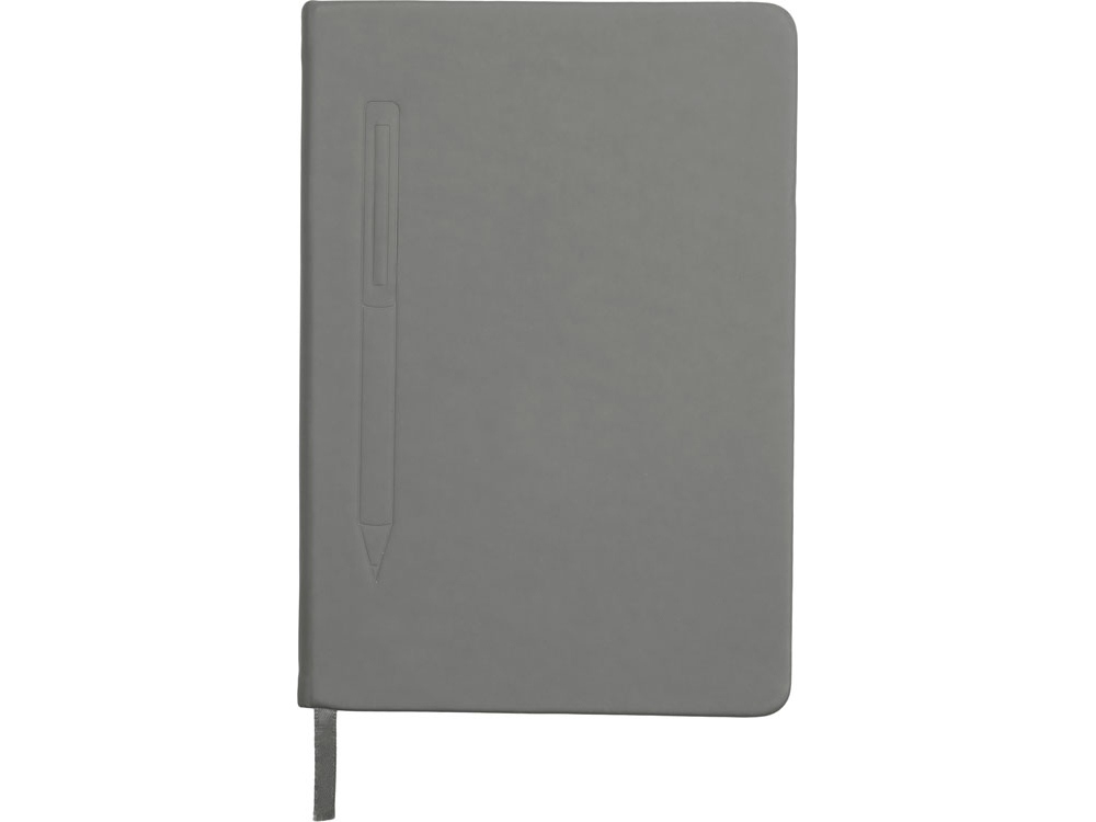 Блокнот А5 Magnet 14,3*21 с магнитным держателем для ручки, серый с логотипом компании - отличный способ заявить вашу корпоративную идентичность.