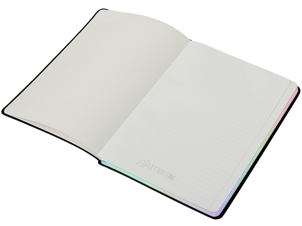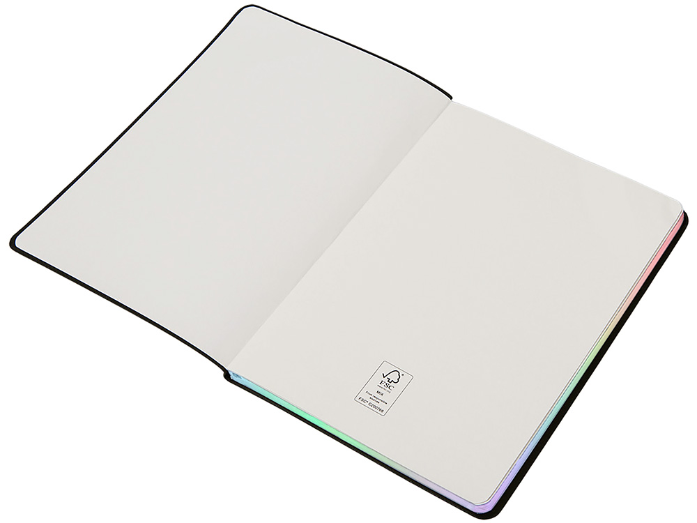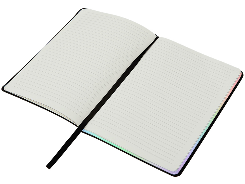 Блокнот А5 в гибкой обложке Fellini с голографическим срезом, черный с логотипом компании - отличный способ заявить вашу корпоративную идентичность.