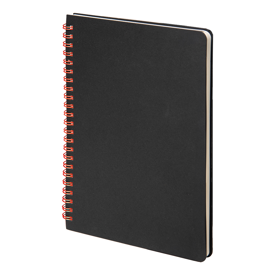 Главная ->Корпоративные подарки и рекламные сувениры на складе -> Ежедневники для работы -> Блокноты -> Блокнот на двойной пружине HELIX, 143 х 205 мм, черный с красным, блок в линейку