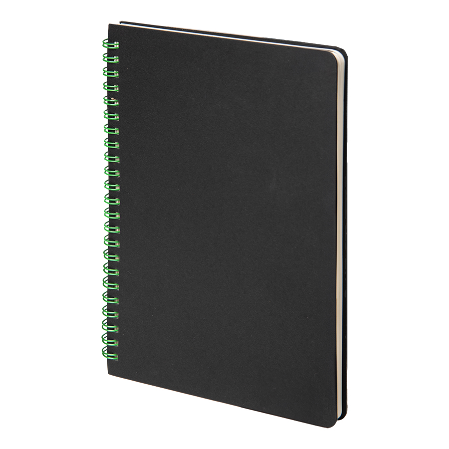 Главная ->Корпоративные подарки и рекламные сувениры на складе -> Ежедневники для работы -> Блокноты -> Блокнот на двойной пружине HELIX, 143 х 205 мм, черный с зелёным, блок в линейку
