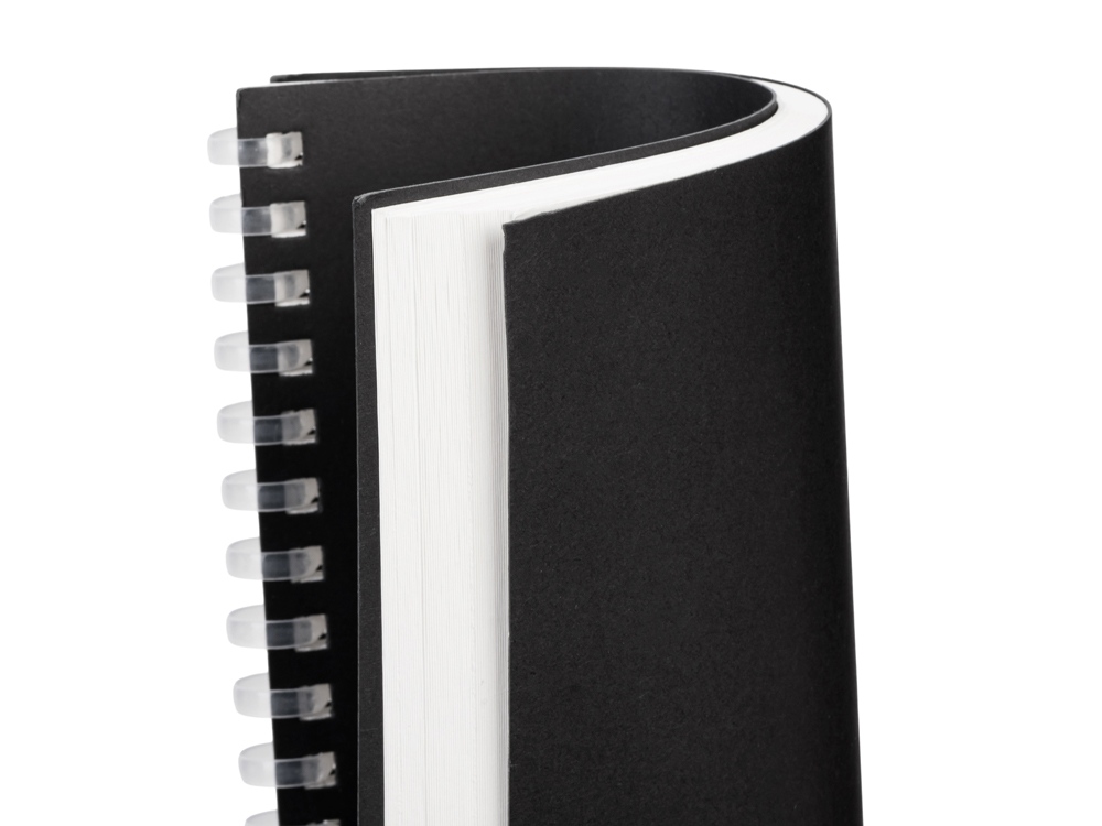 Мягкая прозрачная спираль облегчает блокнот, а гибкая обложка позволит сэкономить место в сумке, свернув блокнот.