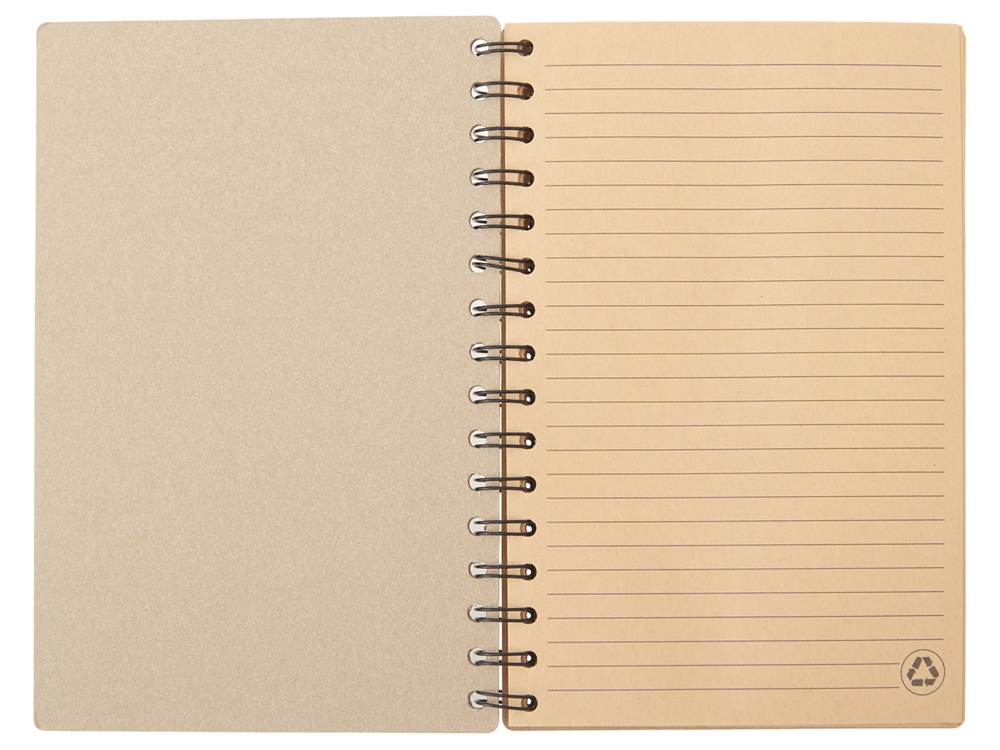 Главная ->Корпоративные подарки и рекламные сувениры на складе -> Ежедневники для работы -> Блокноты -> Блокнот на спирали в картонной обложке с переработанной бумагой Mania, натуральный