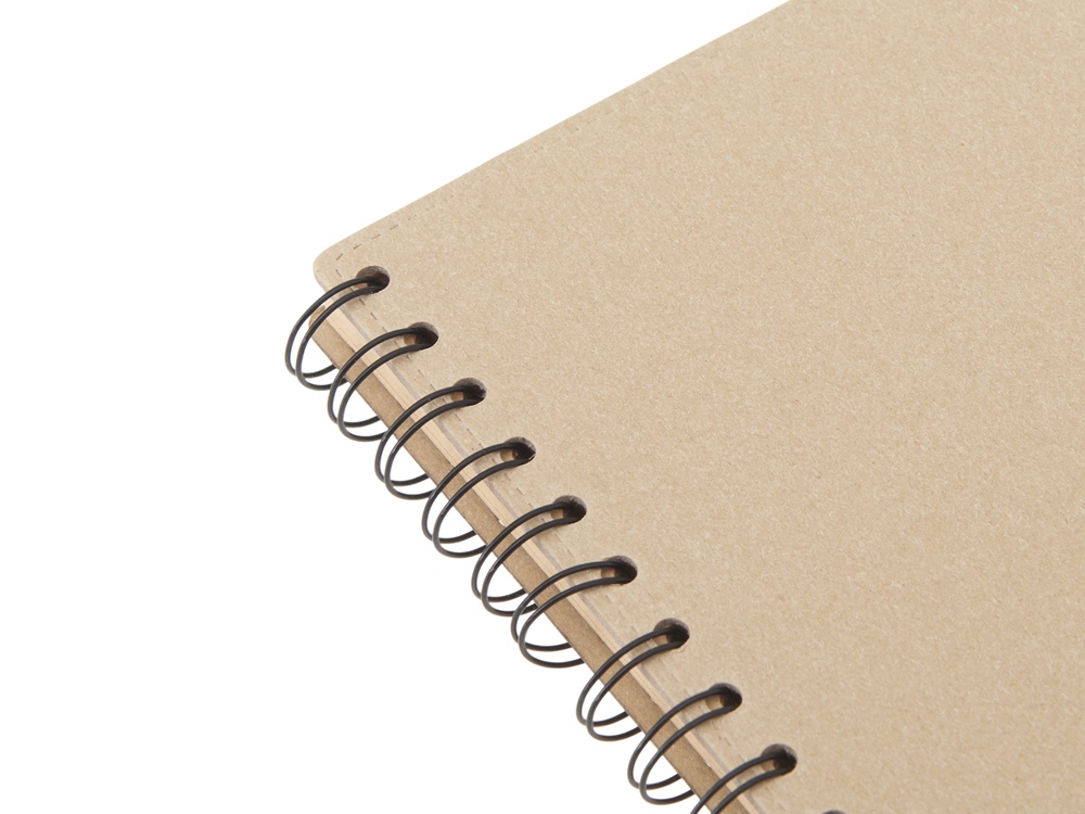 Компания «Эклектика BY» осуществляет нанесение логотипа на сувенирную продукцию: Блокнот на спирали в картонной обложке с переработанной бумагой Mania, натуральный. Арт. 435602