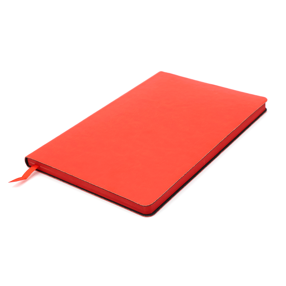 Блокнот формата А5 в мягкой обложке из искусственной кожи. Материал обложки - полиуретан. Размеры: 213*143мм, 96 листов, разлинееные страницы, бумага плотностью 70г/м2, срез прокрашен в цвет обложки. Ляссе в цвет обложки.